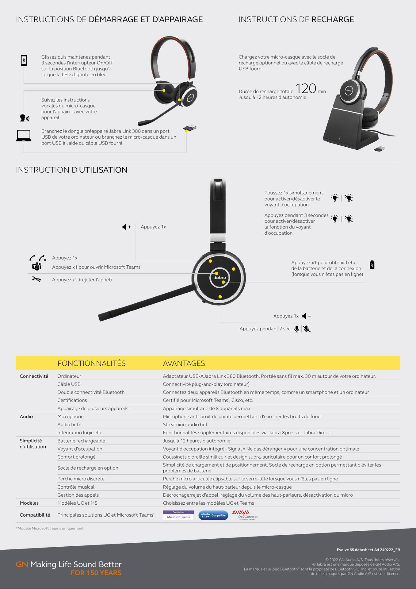 HEADSET JABRA Evolve 65 MS Duo Bluetooth