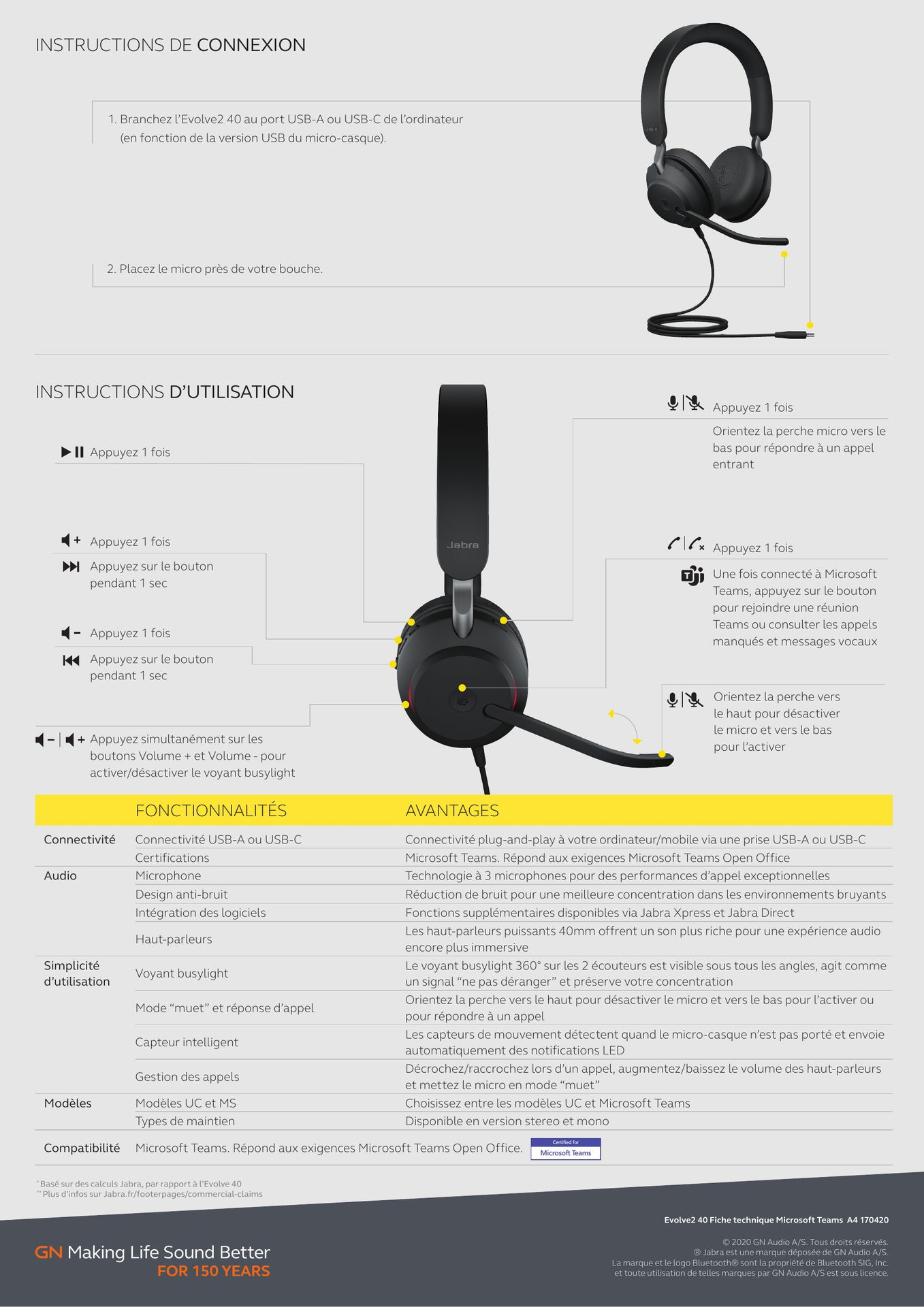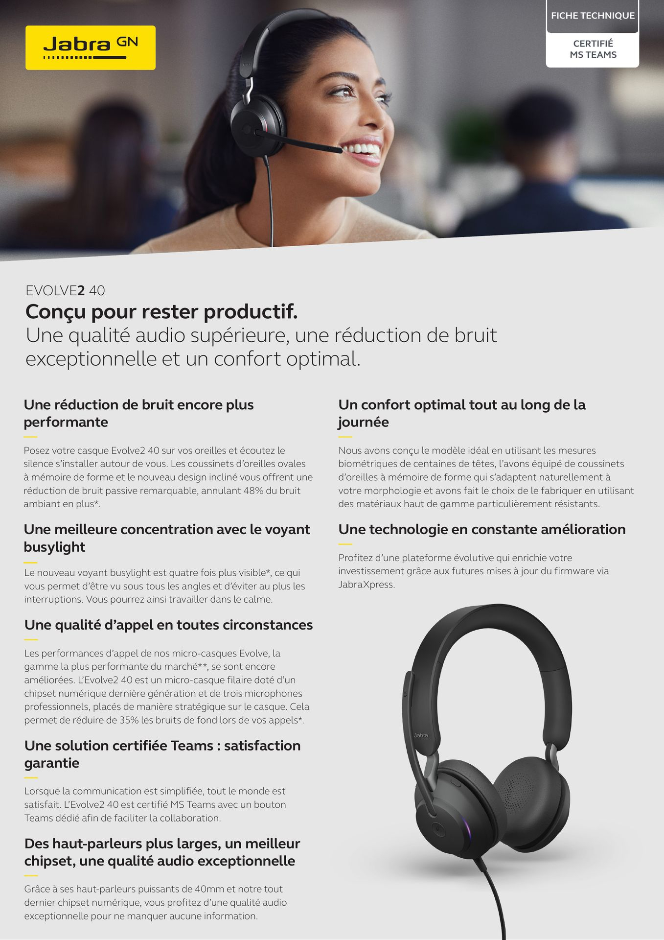 HEADSET JABRA Evolve2 40 MS Stereo USB